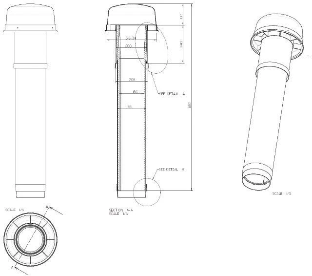 Wolf CWL Excellent Dachdurchführung 2575803 DN 180, 1159mm, Wärmegedämmt, Schwarz